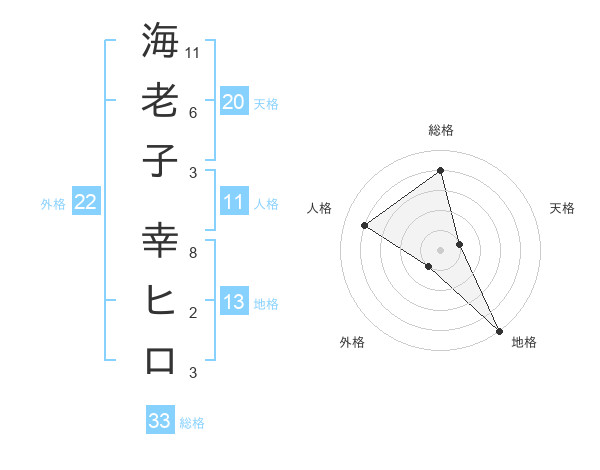 海老子 幸ヒロさんを姓名の画数から五運を鑑定