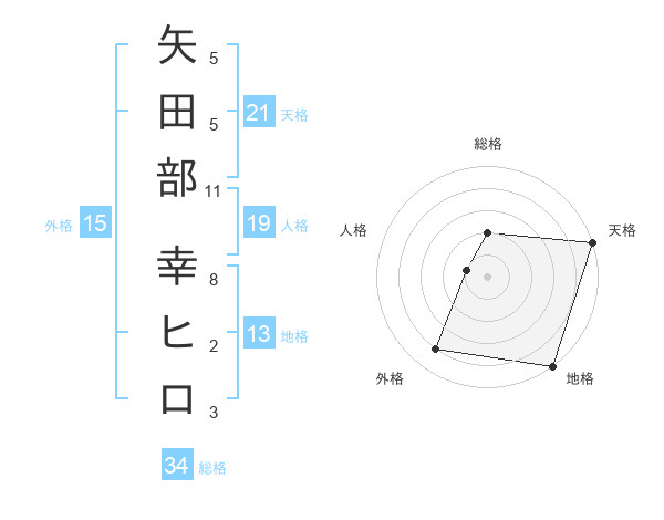 矢田部 幸ヒロさんを姓名の画数から五運を鑑定