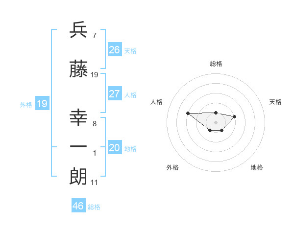 兵藤 幸一朗さんを姓名の画数から五運を鑑定