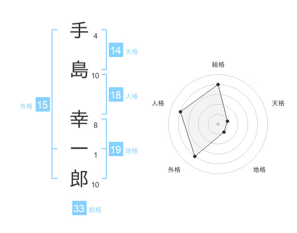 手島 幸一郎さんを姓名の画数から五運を鑑定