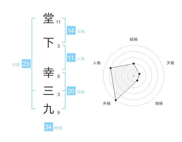 堂下 幸三九さんを姓名の画数から五運を鑑定