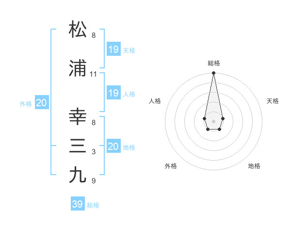 松浦 幸三九さんを姓名の画数から五運を鑑定