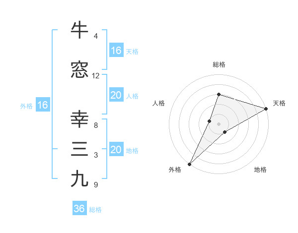 牛窓 幸三九さんを姓名の画数から五運を鑑定