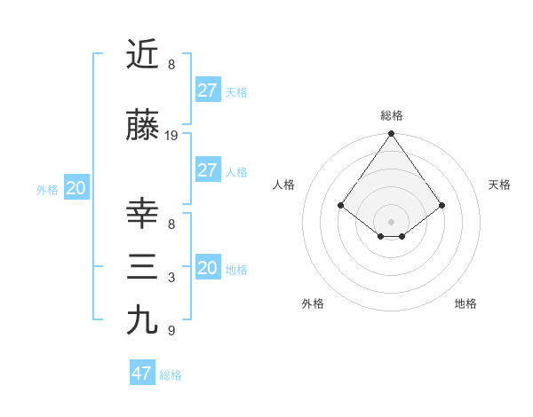 近藤 幸三九さんを姓名の画数から五運を鑑定