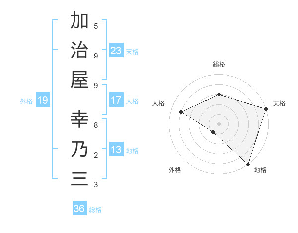 加治屋 幸乃三さんを姓名の画数から五運を鑑定