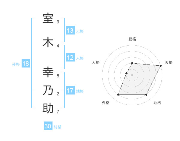 室木 幸乃助さんの総格は30画の2点!