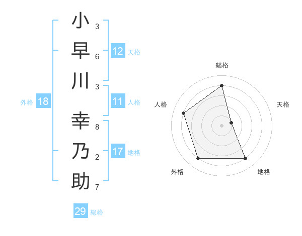 小早川 幸乃助さんを姓名の画数から五運を鑑定