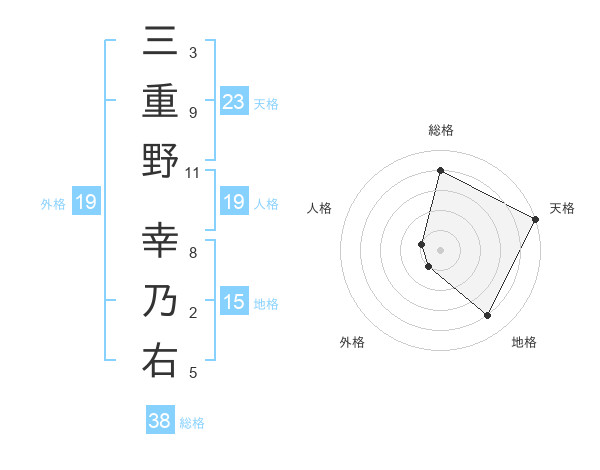 三重野 幸乃右さんを姓名の画数から五運を鑑定
