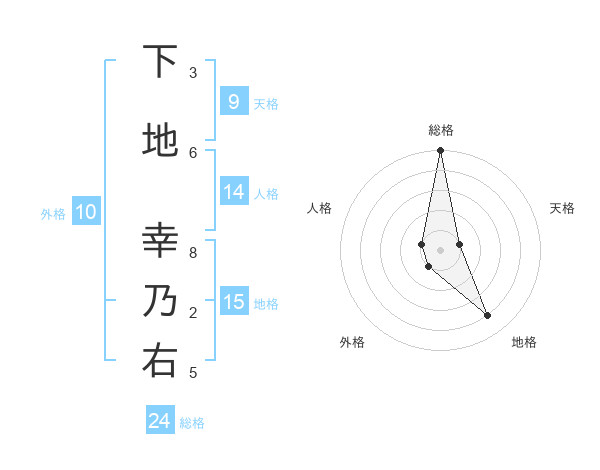 下地 幸乃右さんの総格は24画の5点!