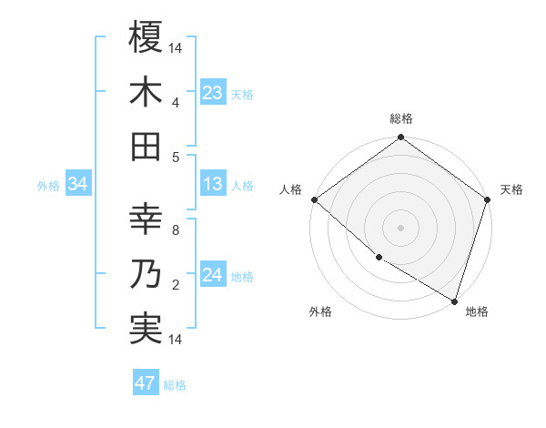 榎木田 幸乃実さんの総格は47画の5点!
