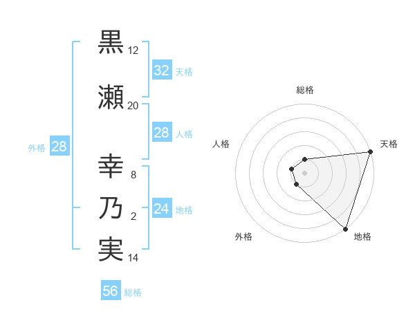 黒瀬 幸乃実さんを姓名の画数から五運を鑑定