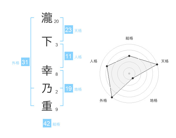 瀧下 幸乃重さんを姓名の画数から五運を鑑定