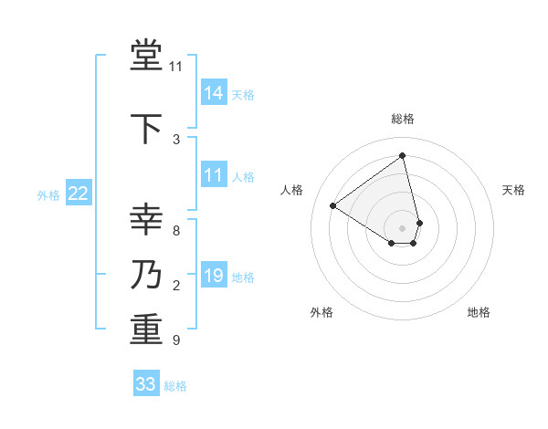 堂下 幸乃重さんの総格は33画の4点!
