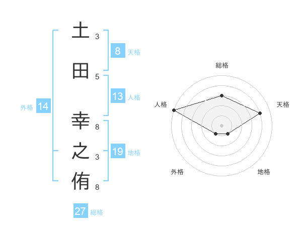 土田 幸之侑さんを姓名の画数から五運を鑑定