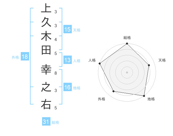 上久木田 幸之右さんを姓名の画数から五運を鑑定
