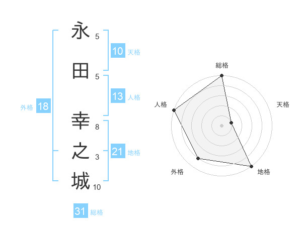 永田 幸之城さんの地格は21画の5点!