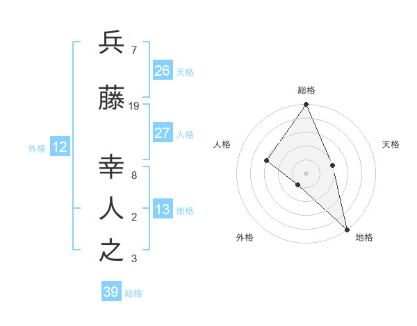 兵藤 幸人之さんを姓名の画数から五運を鑑定