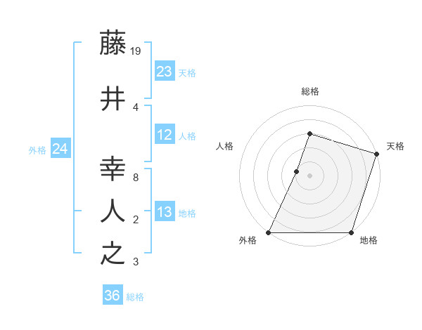 藤井 幸人之さんの天格は23画の5点!