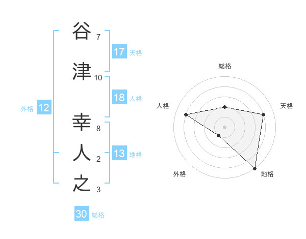 谷津 幸人之さんを姓名の画数から五運を鑑定