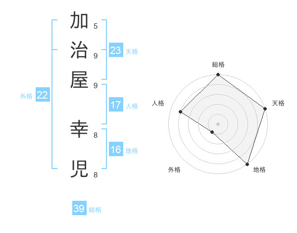 加治屋 幸児さんを姓名の画数から五運を鑑定