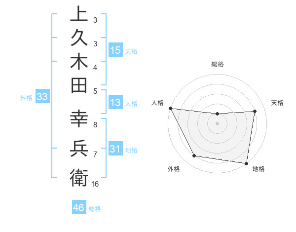 上久木田 幸兵衛さんを姓名の画数から五運を鑑定
