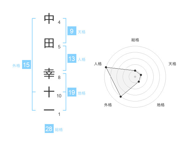 中田 幸十一さんを姓名の画数から五運を鑑定