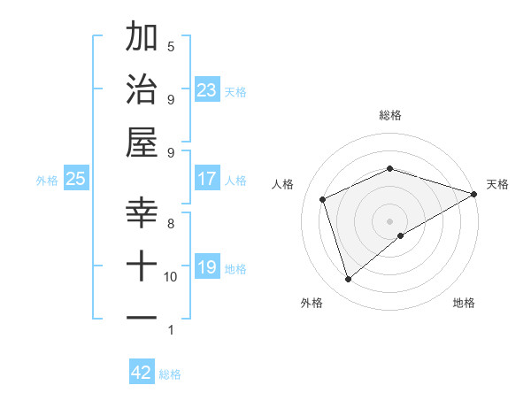 加治屋 幸十一さんを姓名の画数から五運を鑑定