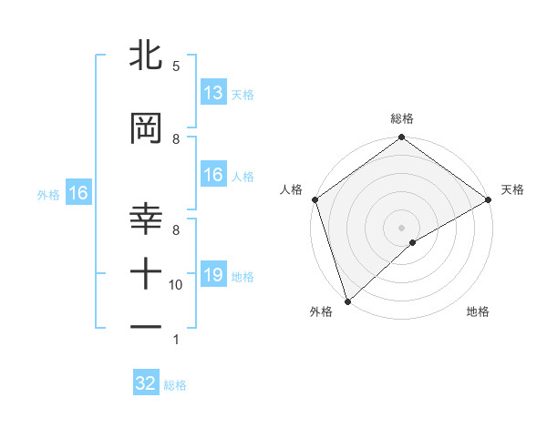 北岡 幸十一さんを姓名の画数から五運を鑑定