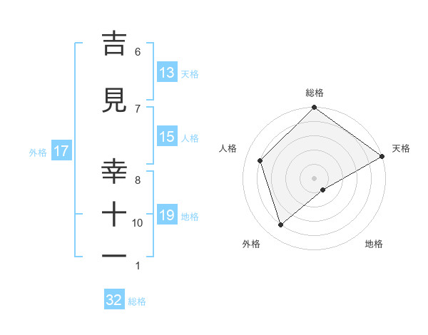 吉見 幸十一さんの天格は13画の5点!
