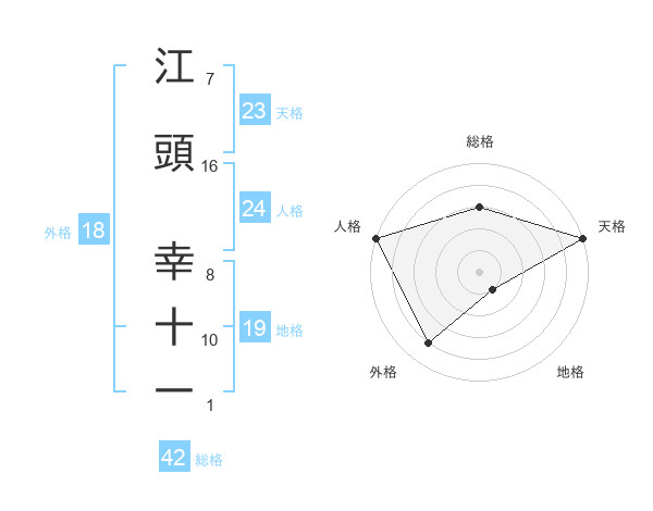 江頭 幸十一さんを姓名の画数から五運を鑑定