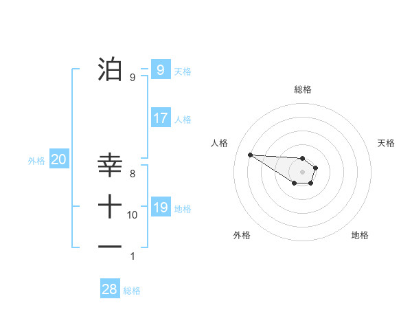 泊 幸十一さんを姓名の画数から五運を鑑定