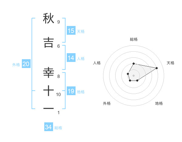 秋吉 幸十一さんを姓名の画数から五運を鑑定