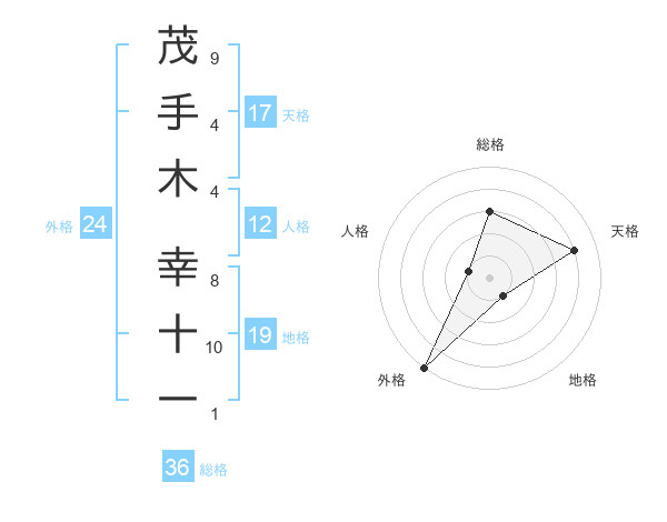 茂手木 幸十一さんを姓名の画数から五運を鑑定