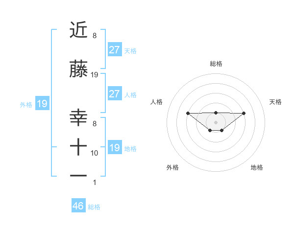 近藤 幸十一さんの総格は46画の1点!