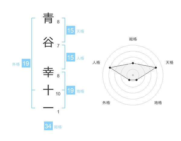青谷 幸十一さんの総格は34画の2点!