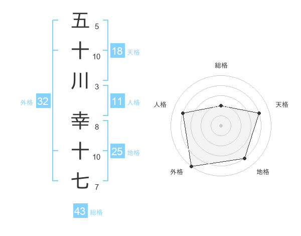 五十川 幸十七さんを姓名の画数から五運を鑑定
