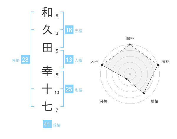 和久田 幸十七さんを姓名の画数から五運を鑑定
