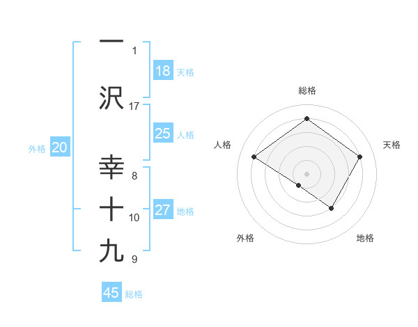 一沢 幸十九さんの総格は45画の4点!
