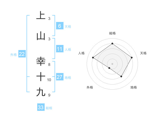 上山 幸十九さんを姓名の画数から五運を鑑定