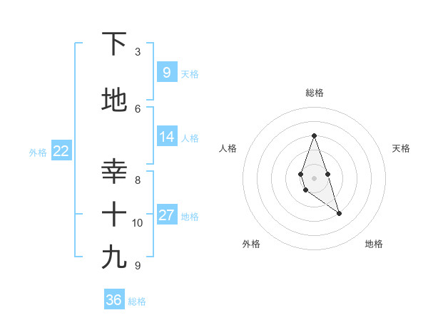 下地 幸十九さんの総格は36画の3点!