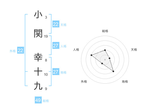 小関 幸十九さんを姓名の画数から五運を鑑定