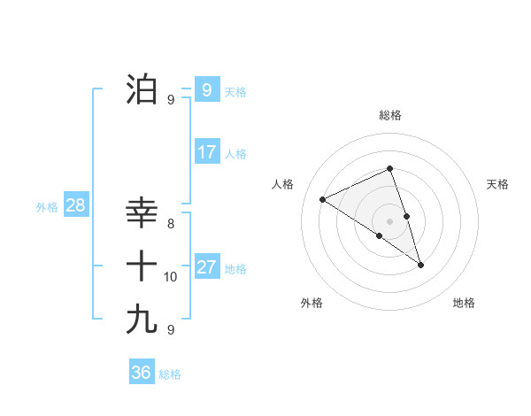 泊 幸十九さんを姓名の画数から五運を鑑定