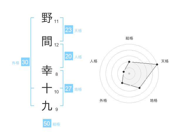 野間 幸十九さんを姓名の画数から五運を鑑定