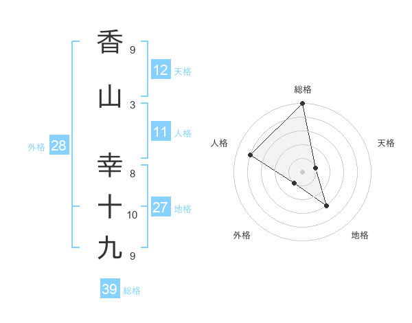 香山 幸十九さんを姓名の画数から五運を鑑定