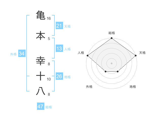 亀本 幸十八さんを姓名の画数から五運を鑑定