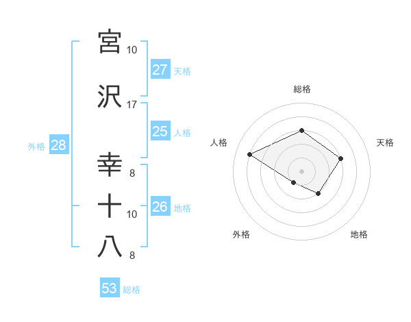 宮沢 幸十八さんを姓名の画数から五運を鑑定