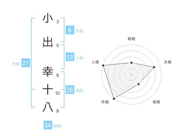 小出 幸十八さんの総格は34画の2点!