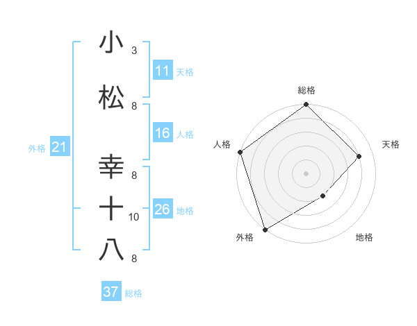 小松 幸十八さんを姓名の画数から五運を鑑定