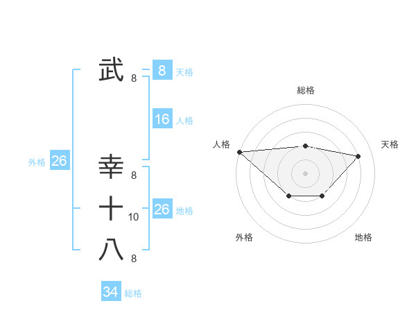 武 幸十八さんを姓名の画数から五運を鑑定