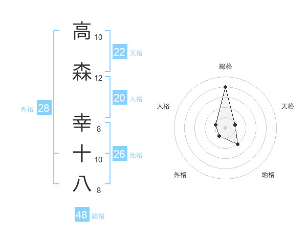 高森 幸十八さんの総格は48画の4点!